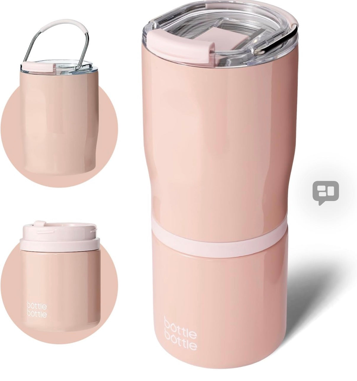 - Multi-Scenario Use: When you use the upper cup to hold coffee and the lower cup to hold ice cream or cookies, it’s a perfect afternoon tea! Or when you use the upper cup for coffee and the lower cup for cola, you can share the cup with your child. All in all, this is a portable and cute tumbler
