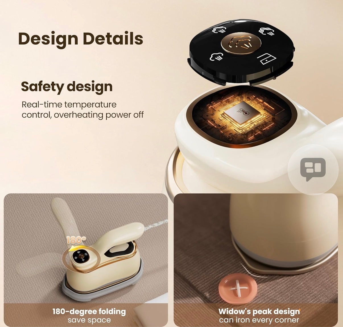 - 1200w Powerful Steamer & 15s fast preheating】 The mitdir mini high-pressure clothes steamer has a power of up to 1200 watts, a preheating time of less than 15 seconds, and can reach a constant temperature of 320°F for fast and efficient ironing. The powerful steam can penetrate deeply into the fabric, soften the fibers, and effectively and quickly remove wrinkles.