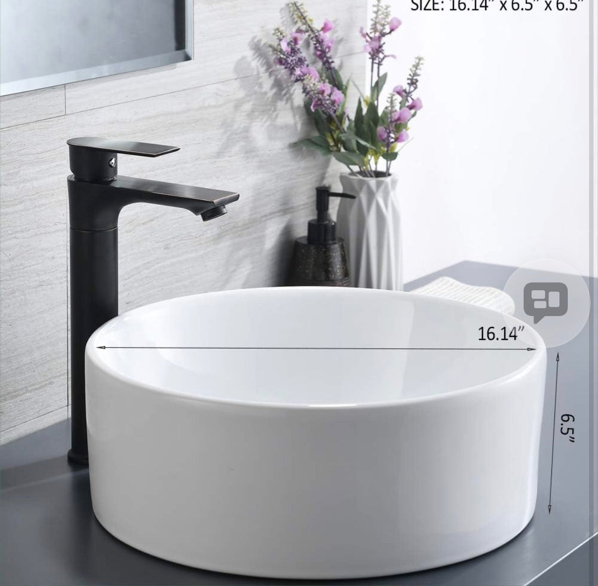 White Round Vessel Sink, BoomHoze 16"x16" Modern Countertop Circle White Porcelain Ceramic Bathroom Sink Above Counter Art Washing Basin